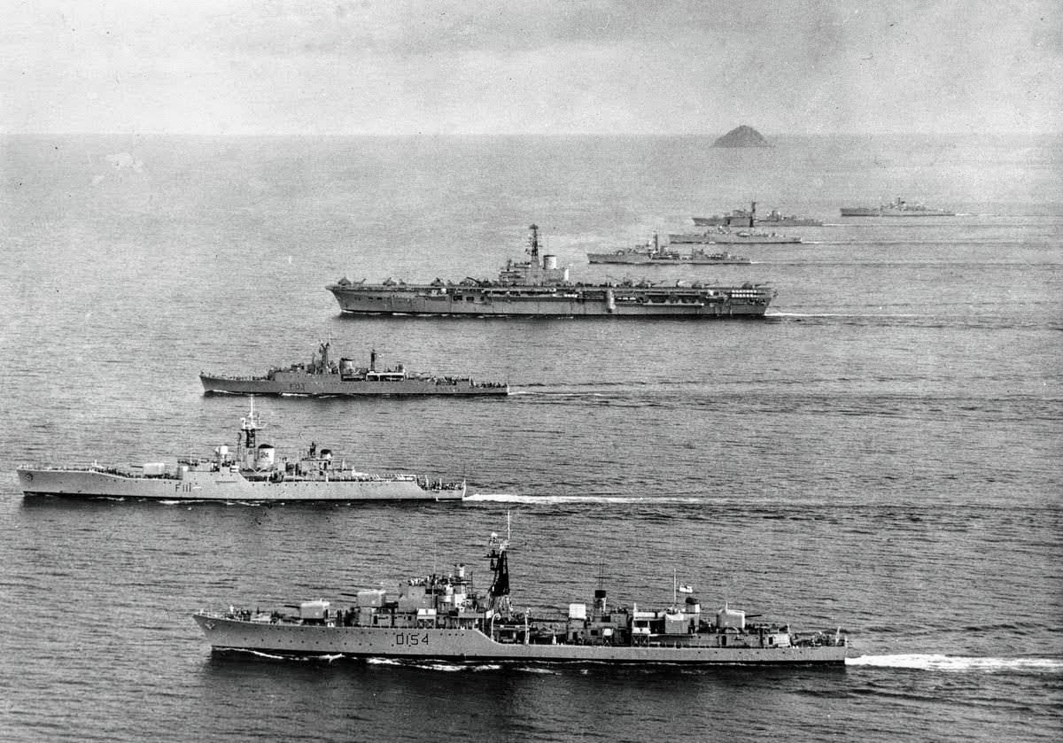HMS Plymouth (F126), HMAS Vendetta (D08), HMS Salisbury (F32), HMS Cambrian (D85), HMS Albion (R07), HMAS Quiberon (F03), HMNZS Otago (F111) and HMS Duchess (D154), Malaya, 1963 - Near Pulau Tioman, Pulau Aur in background. I was onboard Otago (F111) |